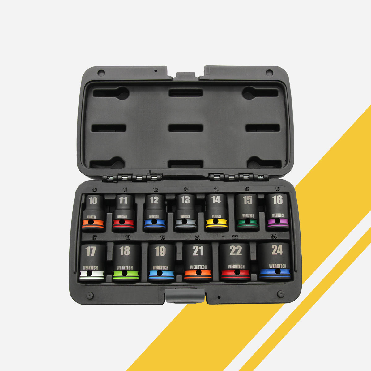 GRIP-ON Anti-Slip Impact Socket Set 1/2" Dr., 13pcs, Color Coded